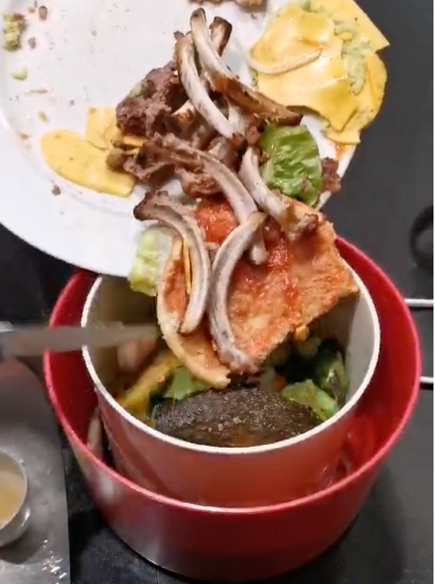 Entsorgung der Küchenabfälle nach Abschluss der Trocknung.
